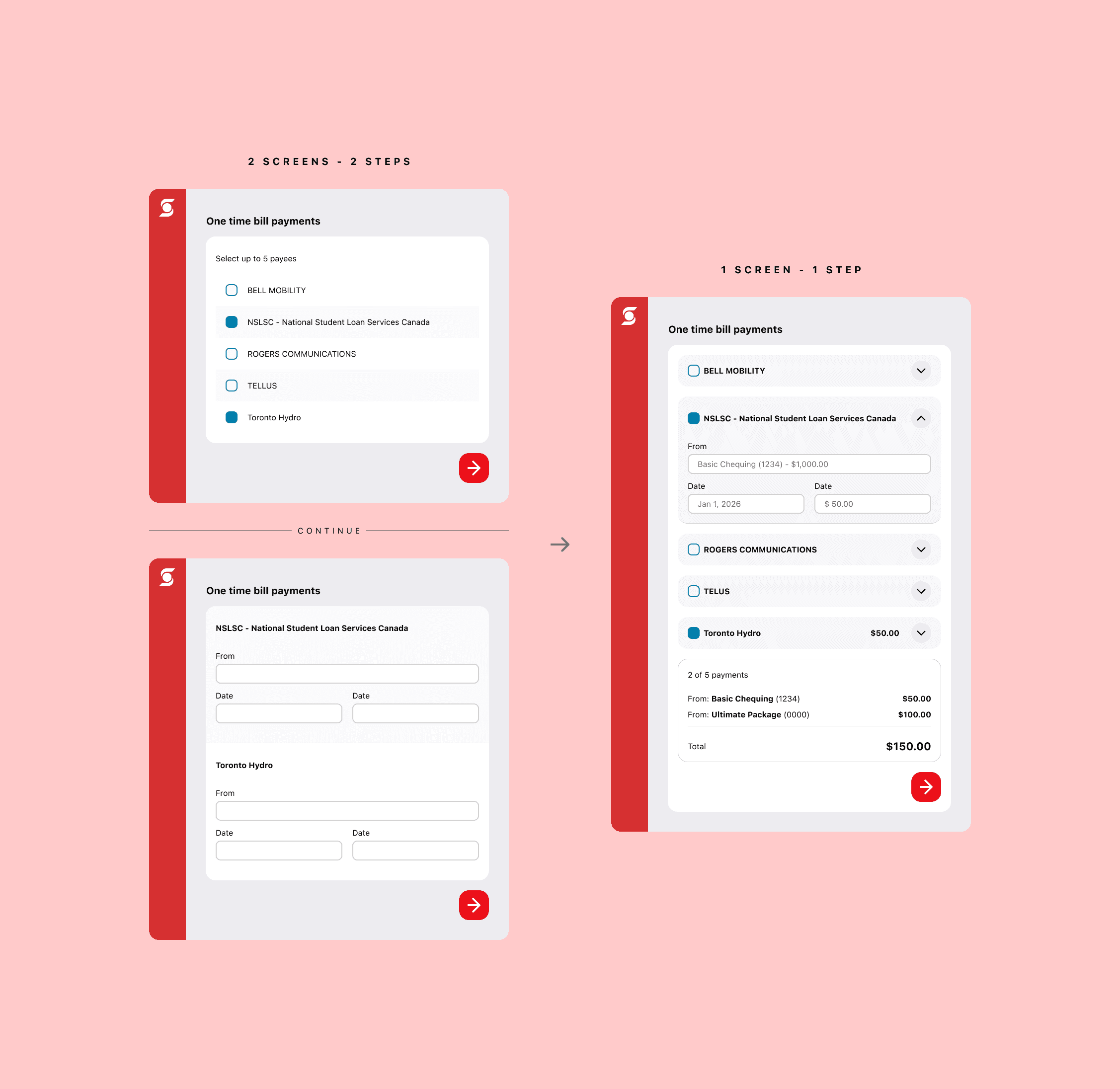 Redesigned the bill-pay experience to reduce friction and improve completion rates.
