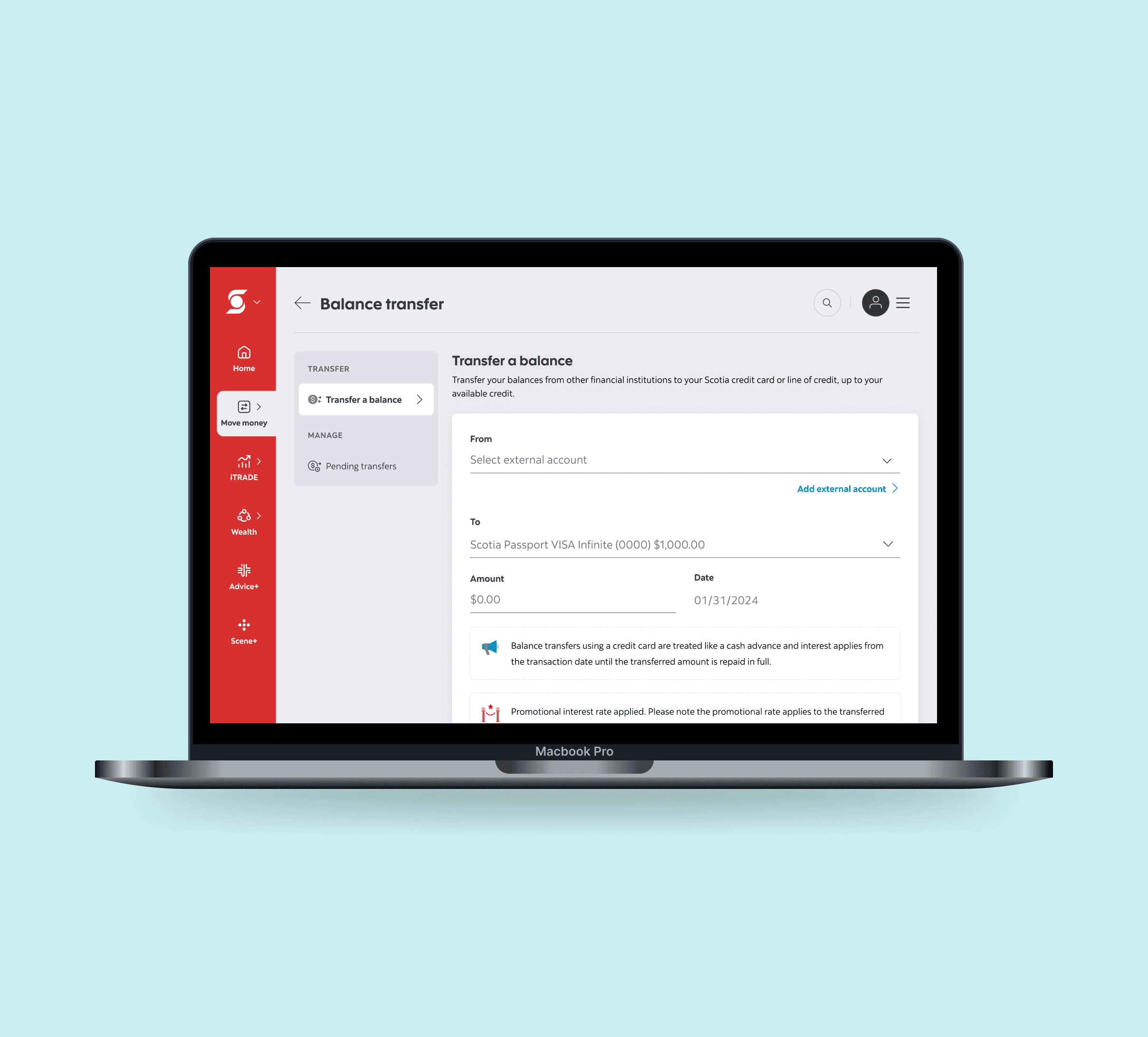 Drove cross-functional alignment to produce a balance transfer flow that supports promos and debt consolidation.